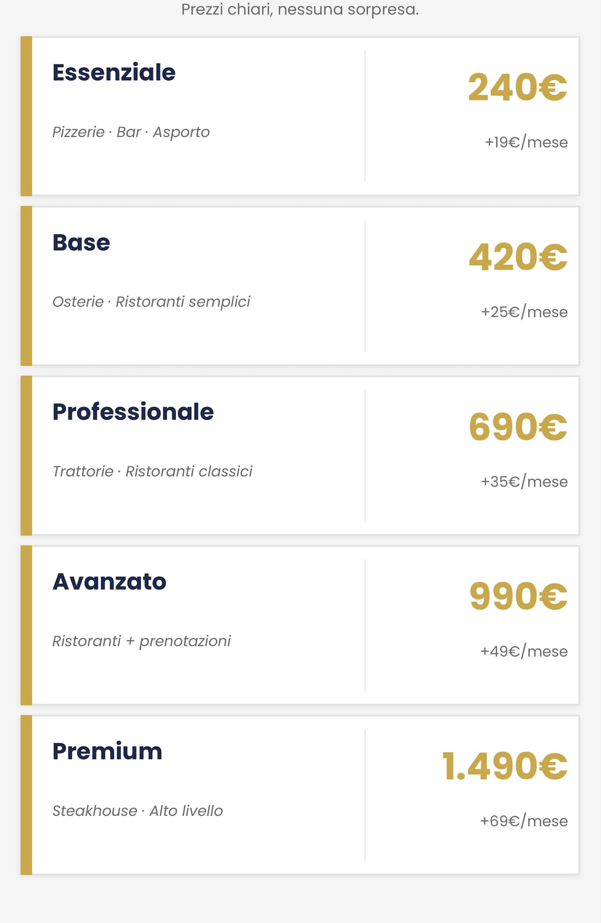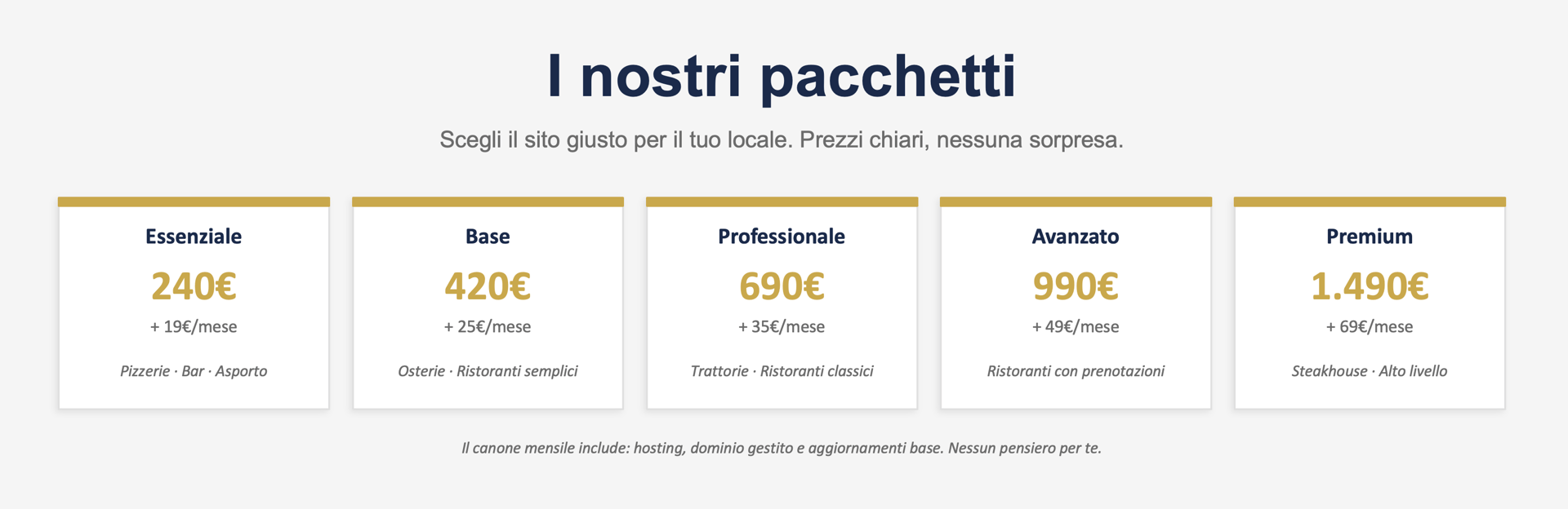 Scegli il sito giusto per il tuo locale. Prezzi chiari, nessuna sorpresa.